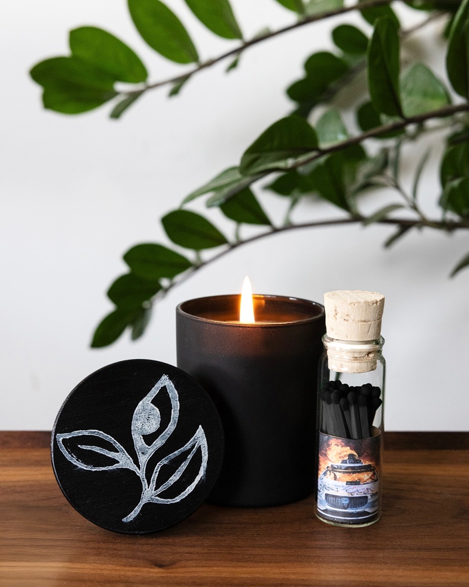 Candle and Glass Tube Matches by Yuzu Leaf Candles, scented with yuzu, shiso, bergamont, basil, and mint